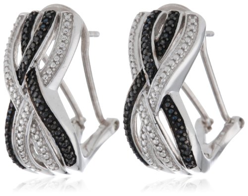 Sterling Silver White and Black Diamond Crossover Omega Back Earrings
