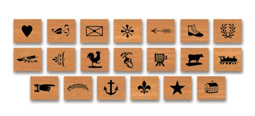 Cavallini Mini Vintage Letterpress 20 Assorted Wooden Rubber Stamps Packaged in a Tin