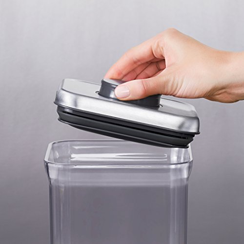 - Airtight, space-saving storage containers keep your Dry foods fresh; stainless steel lids look sleek on your counters