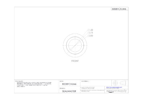 Sealmaster BTS 24LS Heavy Duty Spherical Plain Bearing, Two-Piece, Double Sealed, 1-1/2" Bore, 2-3/4" OD, 1-7/8" Inner Ring Width, 1" Outer Ring Width