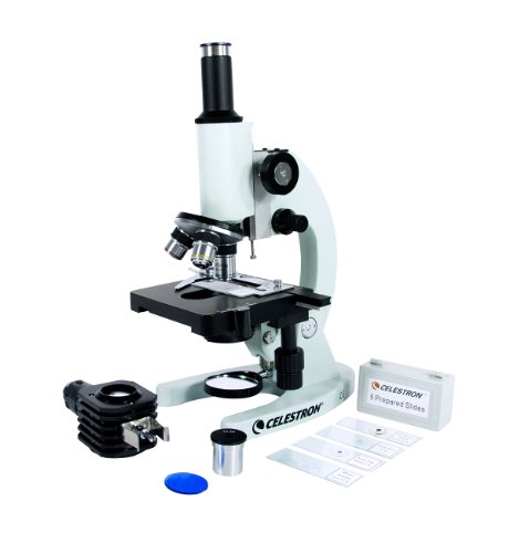 - Intermediate-level 500x power biological microscope with five prepared slides included