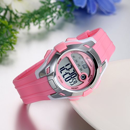 -. Title : JewelryWe LED Digital 30M Waterproof Watch for Girls Multifunction Outdoor Sport Electronic Wrist Watch Pink