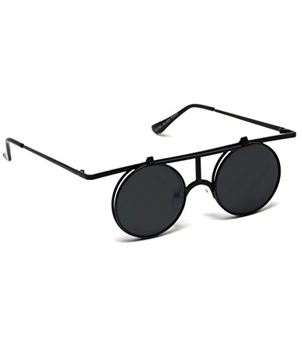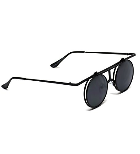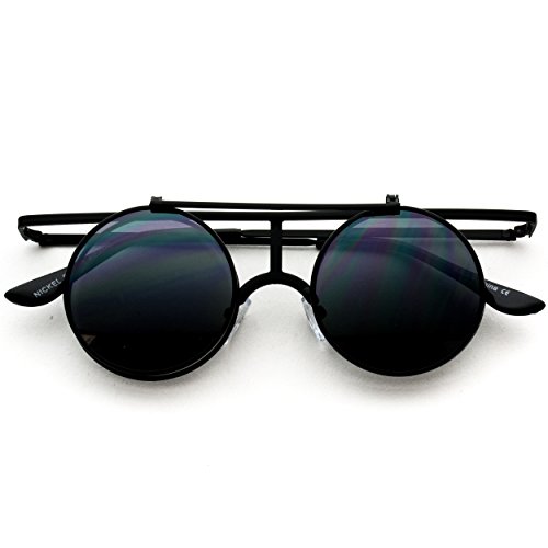 Retro Sunglasses Full Metal Round Circle Mirrored Lens Flip Up Lennon Inspired
