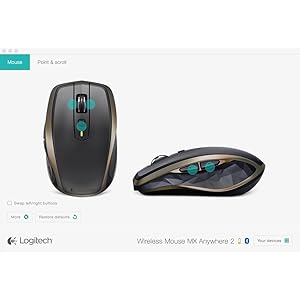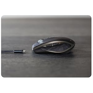 Easy-switching between computers Pair the mouse with up to three Windows or Mac devices at the same time in different locations and easily switch between them with the touch of a button. | Quick recharging A full charge lasts up to two months**. One minute of charging gives you one hour of usage. Charging is easy with the included micro-USB cable. | Virtually limitless customization Install Logitech Options software to experience the full range of possibilities of this advanced mouse. Optimize the mouse for your OS, reassign button functions, enable gestures, adjust tracking speed and much more. Now also with app-specific options, MX Anywhere 2 allows you to program buttons to perform a specific task in one application and a different task in another application***. *** Advanced features require software installation, download available at logitech website. |