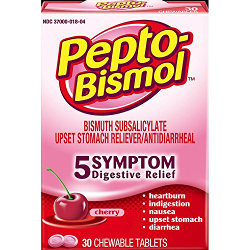 Pepto-Bismol 5 Symptoms Digestive Relief Chewable Tablets, Cherry 30 ea (Pack of 3)