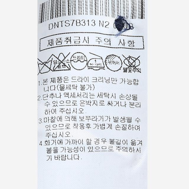 세탁방법 및 취급시 주의사항 1.본 제품은 드라이크리닝만 가능합니다.(물세탁 불가) 2.단추나 액세서리는 세탁시 손상될 수 있으므로 은박지로 싸거나 분리하여 주십시오. 3.마찰에 의해 보푸라기가 발생될 수 있으므로 착용후 가볍게 손질하여 주십시오.