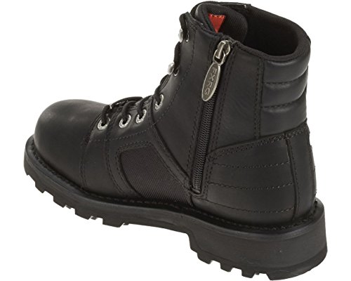 Studio : Wolverine Publisher : Wolverine Product Description Harley-Davidson® Women's Riding Appropriate* Performance Waterproof Leila black leather FXRG motorcycle boots. This is as good as it gets. Made with the best waterproof full grain leather uppers available with removable dual-density polyurethane sock footbed, ShockAbsorbers Twin PadTM Comfort Technology, and industry's best YKK® locking inside zippers for ease of putting on and taking off. Designed with 3M reflective piping, lacing speed hooks at top, a metal Harley® badge on bottom lace, and FXRG and waterproof badging on the sides. Total height: 6.5-inches, Shaft height: 5-inches, Heel height: 1.5-inches. Outsoles rated 'Best" for slip-resistance with a lightweight, flexible polyurethane midsole with a rubber street side finish. The boot's sole, insole and upper are bound using resoleable Goodyear® Welt construction processes, the most labor intensive and durable construction method available. Manufacturer Part Number D87063. *Riding Appropriate-Designed by Harley-Davidson® for motorcycle riding applications. 0