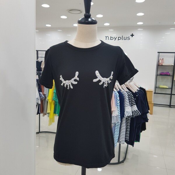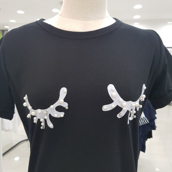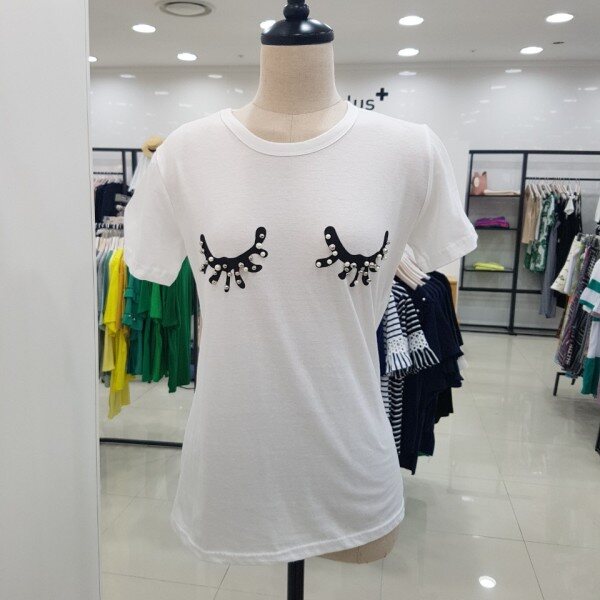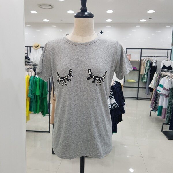 진주 장식 포인트의 반팔 티셔츠입니다.
