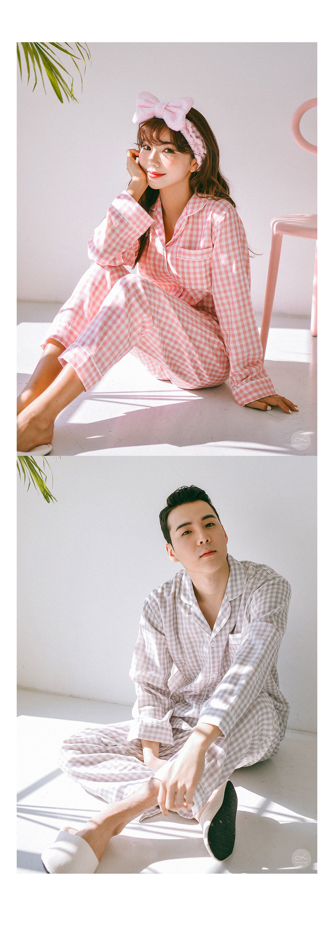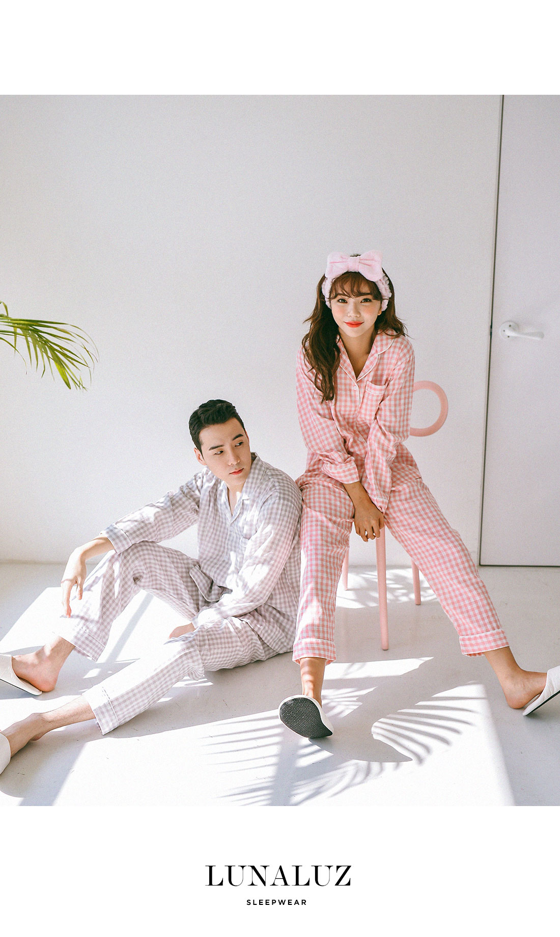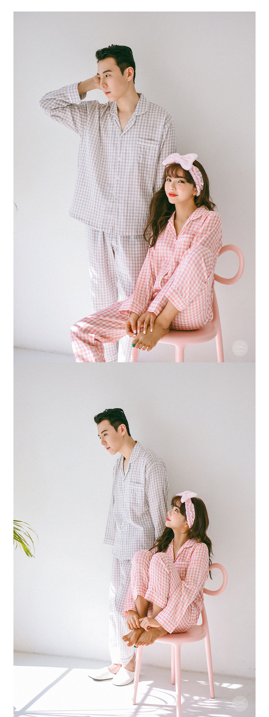 파스텔한 색감이 예쁜 거즈면 잠옷! S/S시즌에 추천해요! 봄, 여름에 입기 좋은 거즈면으로 통풍이 굉장히 우수하고, 소재가 유연하며 착용감이 좋습니다. 원단이 얇아 가볍고, 편안하게 착용하기 좋은 스타일입니다. 여성 잠옷은 파스텔톤의 은은한 핑크와 코지한 느낌의 라이트그레이 2가지로 제작했습니다. 남성 잠옷은 라이트그레이 한 가지 컬러로 구성해보았습니다.