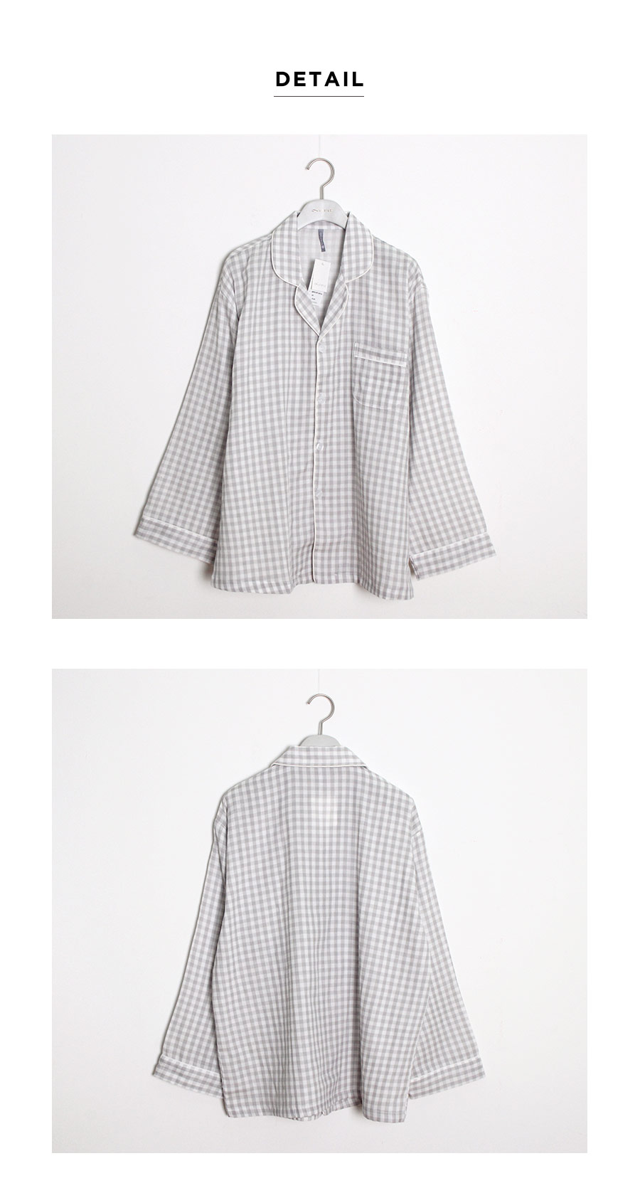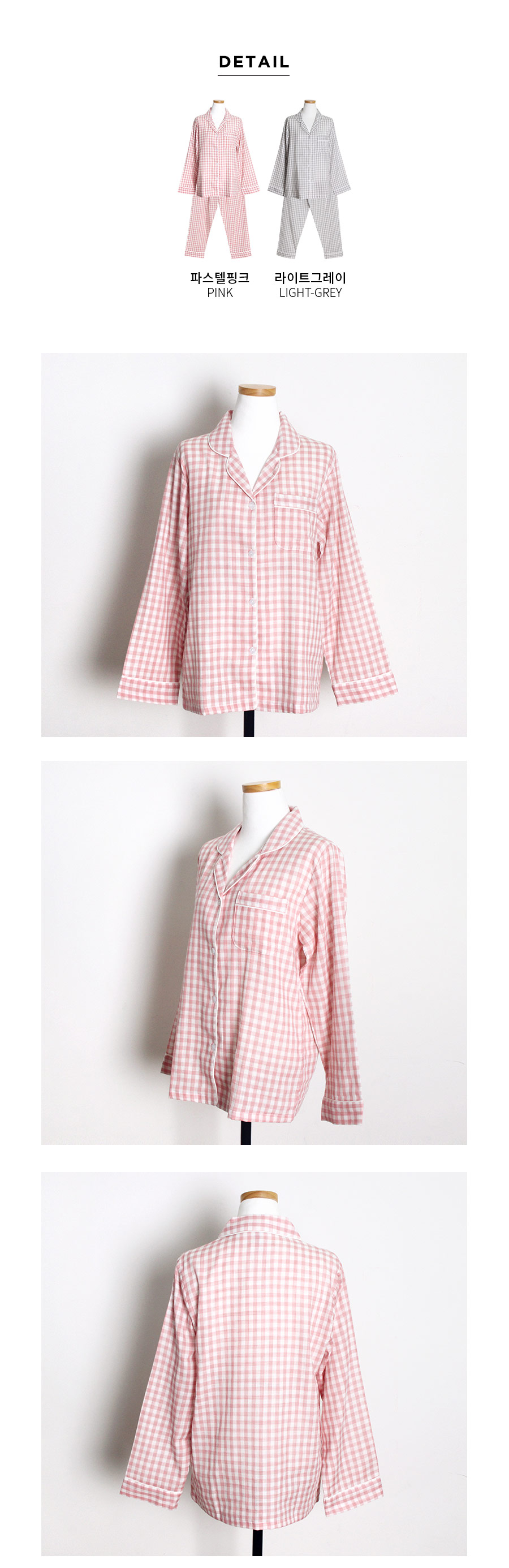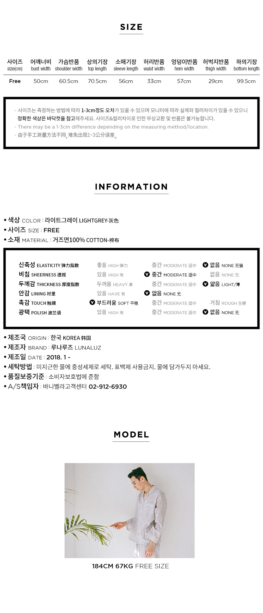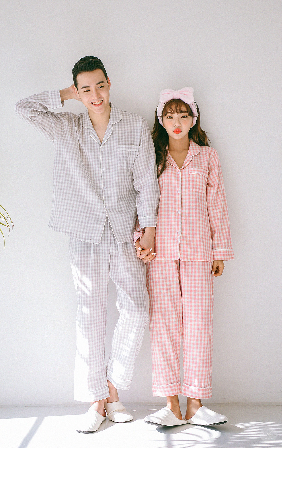 파스텔한 색감이 예쁜 거즈면 잠옷! S/S시즌에 추천해요! 봄, 여름에 입기 좋은 거즈면으로 통풍이 굉장히 우수하고, 소재가 유연하며 착용감이 좋습니다. 원단이 얇아 가볍고, 편안하게 착용하기 좋은 스타일입니다. 여성 잠옷은 파스텔톤의 은은한 핑크와 코지한 느낌의 라이트그레이 2가지로 제작했습니다. 남성 잠옷은 라이트그레이 한 가지 컬러로 구성해보았습니다.