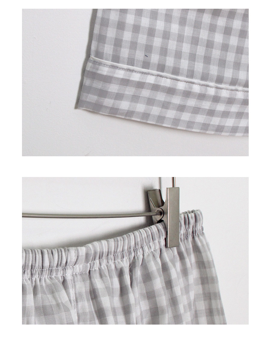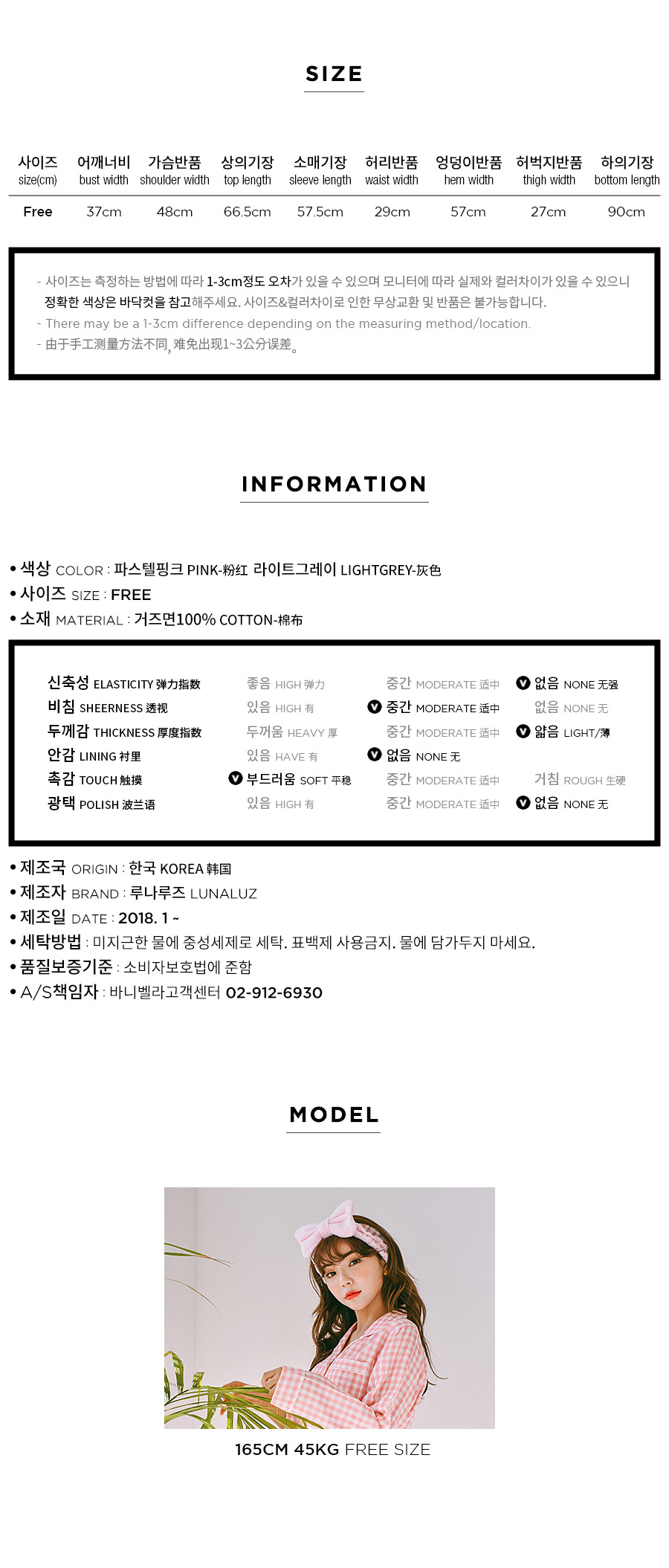 DETAIL 깔끔한 파이핑 포켓 카라 스타일의 파자마 세트로 카라의 끝 부분에 꼼꼼하게 아이보리 컬러의 파이핑을 봉제해 포인트를 주었습니다. 클로징 부분까지 이어지는 아이보리 컬러의 파이핑은 편안한 느낌을 주며 가슴 부분에 포켓을 넣어 귀엽게 마무리했습니다. 소매의 끝단과 팬츠의 끝 부분에도 파이핑을 둘러 마무리했습니다. 100% 국내 생산으로 봉제선이 깔끔하고, 디자인과 부자재, 소재의 퀄리티가 높습니다.