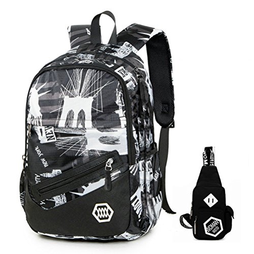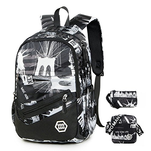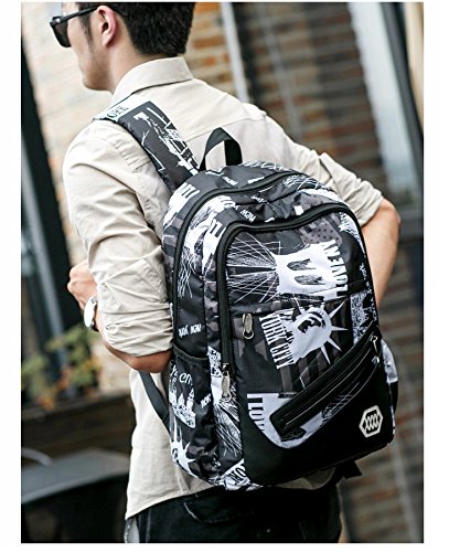(《오만》)WO MAN WEI SI 배낭 백 팩 인기 고교생 패션 캔버스 백 팩 데이 팩 통학 소풍대 용량 남녀 겸용 레이디스 (New Style1) 백팩 학생 가방