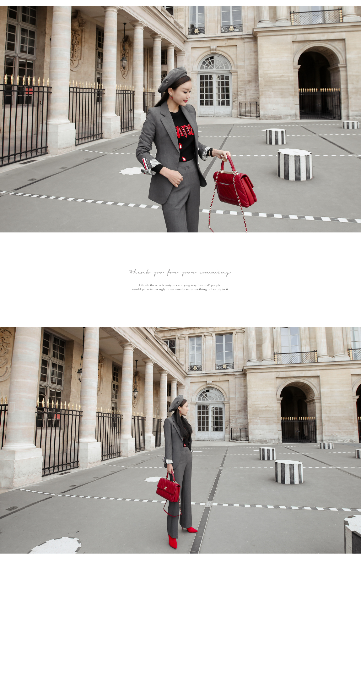 허리라인의 배색 디테일로 트렌디한 포인트를 주었어요