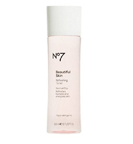 Helps Refresh, Hydrate & Energize Skin Helps Reveal Healthy, Bright & Beautiful Skin Hypo-Allergenic Created to Help Your Dry Skin Behave Like Normal Skin A light, refreshing toner that sweeps away every last trace of make-up and cleanser to help keep skin looking clear and healthy. Fragrance free, non drying and Ph balanced. It works in harmony with your skin to leave your face clean, toned and supple. Enriched with No7's unique multivitamin and mineral blend to hydrate and energize skin plus rosehip oil to help lock in moisture.Feature