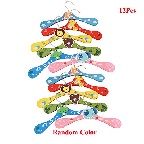 -. Title : Lzttyee 12Pcs Children Cute Cartoon Animal Wooden Clothes Hangers Coats Pants Hook Hanger Rack Stands Random Color