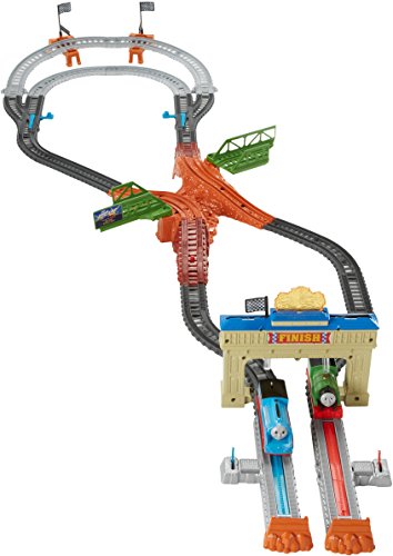 - Includes uniquely designed, racing-themed Thomas and Percy motorized toy trains