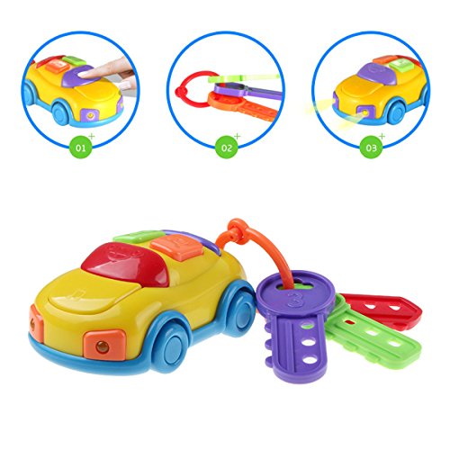 Lively Design - The car with two head light, when our baby presses any buttons, it would light on; Guiding baby to take away the key from the circular ring to practise his operational ability.