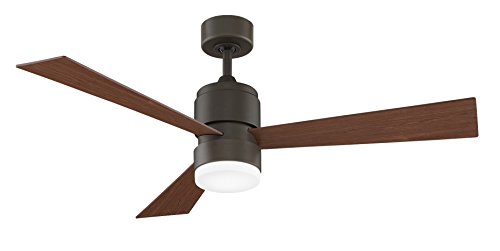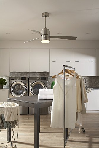 The Animation FP4650BN Zone ceiling fan blends a clean design with efficient functionality to help keep the room cool with an attractive style. The three brushed nickel blades match the fixture body to give a warm slightly rustic feel to any room. The included light kit is diffused by an opal frosted shade to evenly light up any room. The blades are a composite material which means that this fan is UL listed for damp locations. It comes with a 6-inch down rod to fit ceiling slopes of up to 30 degrees and has a 54-inch blade span with three speeds that range from calm circulation to a relaxing light breeze. All three speeds can be run in forward or reverse and are controlled by the included remote. The large blade span and ceiling angle make it the perfect choice for large rooms.Feature