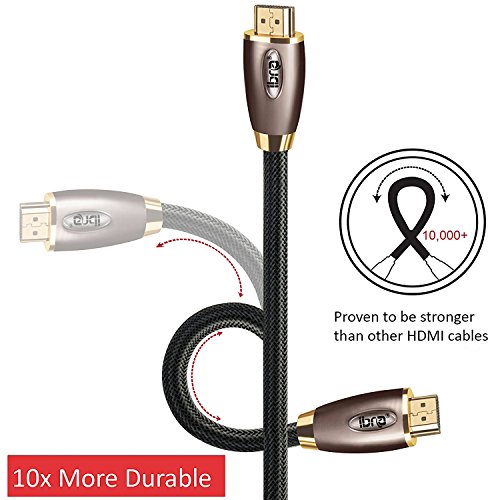 IBRA® RED GOLD Series HDMI Cord Connects the HDMI-compatible device to your HDTV/display source. It combines HD audio video into 1 cable for many home theatre needs. These heavy-duty and high-speed HDMI 28AWG cables with solid copper conductors corrosion-resistant gold-plated solid metal-shielding are made from premium materials for a pro-grade output. It allows for a shared internet connection among compatible devices, without extra wiring. Please don't be fooled by thin Copper Clad Aluminium (CCA) cables. This beauty is made of 100% pure oxygen-free bare copper and is triple-shielded for maximum performance and ultra-low SNR. High quality sound and pictures: IBRA® RED Gold High-Speed HDMI 2.0 cable significantly extends bandwidth of up to 18 Gbps, providing 4K @ 60FPS (2160p and 4:4:4 Chroma Support) video resolution (four times higher than 1080p / 60) and supports wide-angle 21:9 video aspect ratios. Synchronized video and audio streams: New IBRA® RED Gold High-Speed HDMI 2.0 cord can transmit two video streams (dual view) at once and up to four audio streams all at the same time. More often, IBRA HDMI cables support up to 32 audio channels and up to 1536 kHz total audio. Compatibility: Devices with standard HDMI ports, like an HDTV, Blu-Ray player, PS3, PS4, Xbox 360, Apple TV, Roku, Boxee, PC, Mac, Stereo, Monitor Projector. Backwards Compatible With Previous HDMI Standards: The cable is backwards compatible with all previous HDMI standards, so you'll be able to use this cord with all your HDMI devices. When you connect two devices with different HDMI standards, they will automatically find the best available connection. 0