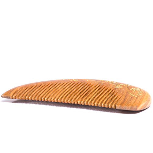 Breezelike Sandalwood Hair Comb with Premium Gift Box - No Static Wooden Fine Tooth Detangling Comb, Handmade with Green Sandalwood and Painted...