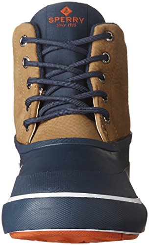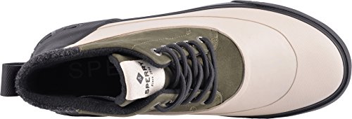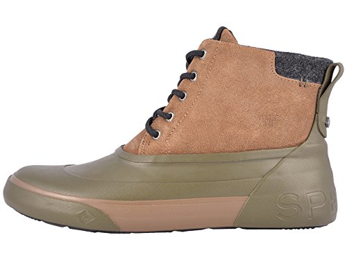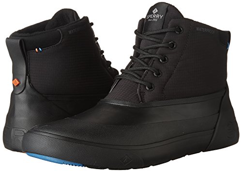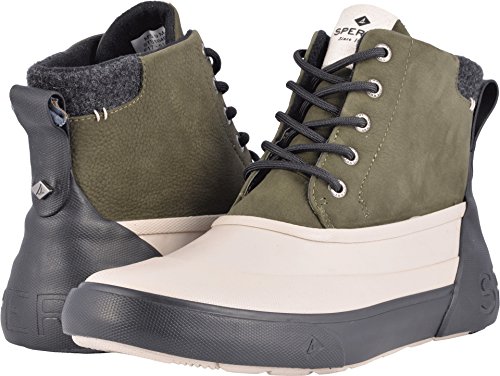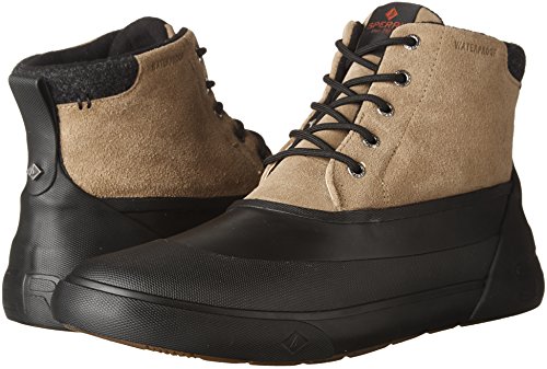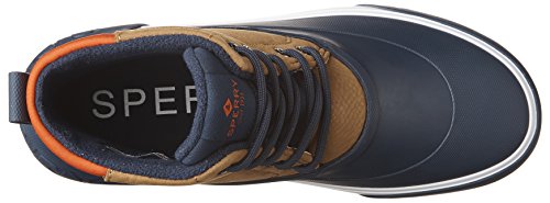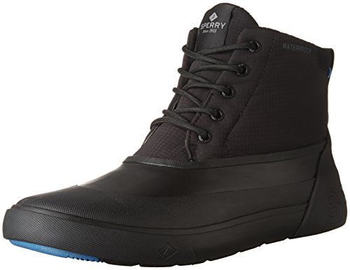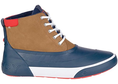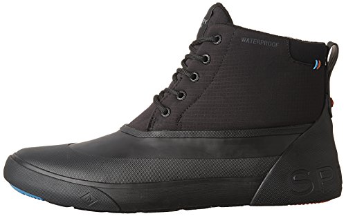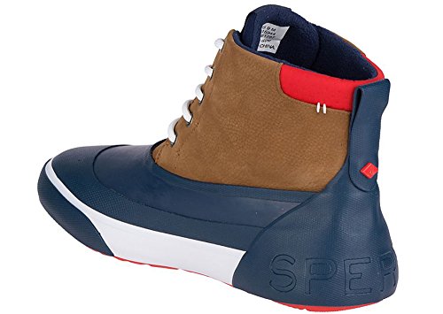 Studio : Sperry Publisher : Sperry Binding : Apparel Product Description The Cutwater Deck Boot by Sperry® combines a modern-sneaker feel with insulated protection against the worst wet-weather conditions. Full grain leather upper and rubber shell offer durability, while fleece lining and Thinsulate® throughout the boot provide warmth and comfort. EVA footbed absorbs shock for comfort no matter the destination. Rubber outsole with razor-cut wave siping for added traction in all conditions. Searching for a wet-weather boot that feels as good as your favorite pair of sneakers? You've found it. Genuine rawhide lace. Leather upper, rubber shell/sole. Imported. Whole and half sizes 8-12, 13. 0