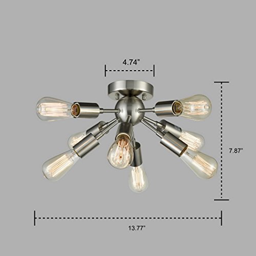 8 socket sputnik flush mount ceiling light, brushed nickel finish
