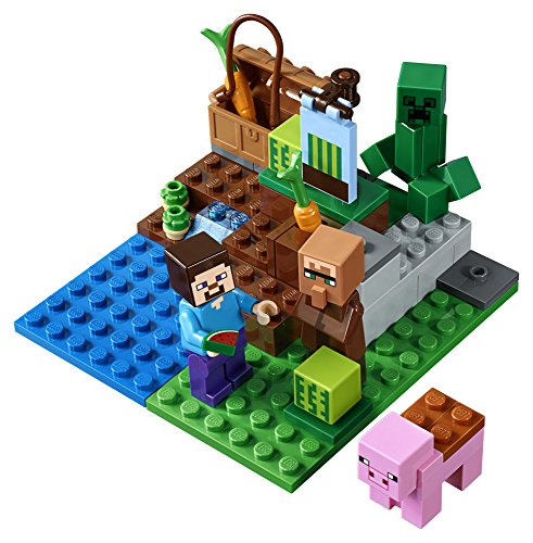 -. Feature : Includes 2 LEGO Minecraft : Steve and a Villager, plus pig and Creeper figures / Features a buildable Minecraft melon farm setting with decorative melon banner, crops and exploding Creeper function / Accessory elements include a chest, 2 carrots, 2 melons, 2 potatoes and a melon slice / Set your imagination free-rebuild the set for more LEGO Minecraft creations / Measures over 2" (6cm) high, 3" (9cm) wide and 3" (10cm) deep