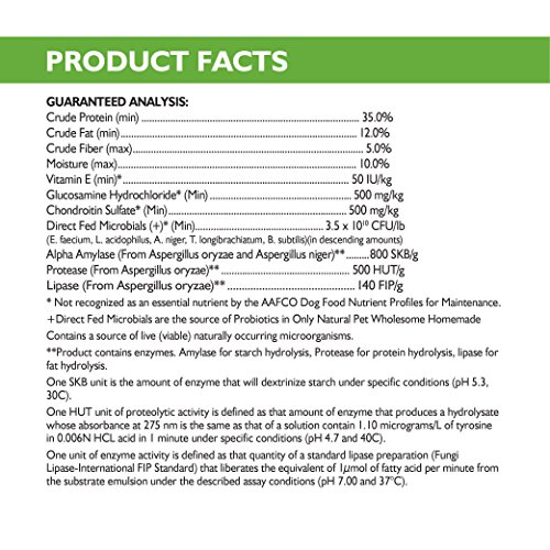 -. Binding : Misc. -. Brand : Only Natural Pet -. Feature : Just add water! / 100% Guaranteed! -. Label : Only Natural Pet -. Manufacturer : Only Natural Pet -. MPN : 999795 -. NumberOfItems : 1 -. PackageQuantity : 1 -. PartNumber : 999795 -. ProductGroup : Pet Products -. ProductTypeName : PET_SUPPLIES -. Publisher : Only Natural Pet -. Studio : Only Natural Pet -. Title : Only Natural Pet Wholesome Homemade Dehydrated Dog Food