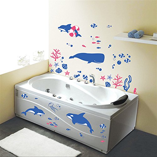 -. Title : Dnven (41"w X 25"h) Undersea Fishes Tropical Fishes Dolphin Coral Whales Sea Horse Vinyl Wall Stickers Wall Decals Removable Decors for Bedrooms Children Rooms Nursery