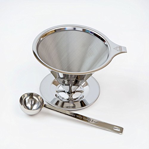 -. Brand : HANAJASA -. EAN : 0702038299783 -. Feature : JUST LIKE THE COFFEE SHOP - Stainless steel allows you to save all the essential flavors and aromas that get lost with paper filters. Pour a barista-quality cup! / HIGHEST QUALITY KITCHEN GRADE MATERIALS - Pristine filter with a cool-to-touch handle. Entire dripper is dishwasher safe and maintains shape after wash! / COMPACT AND PORTABLE - A small and clever drip system. Brew an excellent cup at a fraction of the cost and space required from a larger coffee maker machine! / SIZED TO FIT ALL - Simply place on your cup, mug, small pot, thermos, or carafe and fill with a scoop of your favorite grind. Pour in hot water and you are on your way to a satisfying sip! / 100% SATISFACTION GUARANTEED - If you are not absolutely happy with your purchase for any reason, simply send if back for a full refund. No questions asked! -. Label : HANAJASA -. Manufacturer : HANAJASA -. ProductGroup : Kitchen -. ProductTypeName : KITCHEN -. Publisher : HANAJASA -. Studio : HANAJASA -. Title : Premium Cone Coffee Dripper - Stainless Steel Pour Over System - No Paper Filter Needed - Includes a Matching 5 oz Measuring Spoon! -. UPC : 702038299783