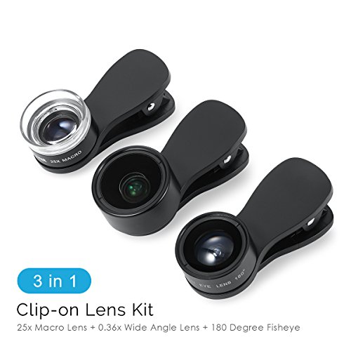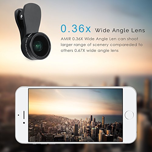 -. Title : Amir® 3 in 1 Clip-on Cell Phone Camera Lens Kit, 25x Macro Lens + 0.36x Wide Angle Lens + 180° Fisheye Lens for iPhone 6S, 6S Plus, Samsung Galaxy, Windows & Most Smartphones