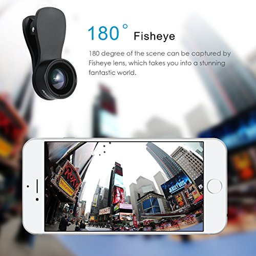 -. Feature : SUPER WIDE ANGLE LENS: The 0.36X Wide Angle Lens enables you to take pictures of large ranges. No more worried to miss any people or landscape in your photos / FISHEYE LENS: 180° Fisheye Lens provides you incredible and dramatic rounded images without dark corners, which takes you into the stunning and fantastic world / UPGRADED MACRO LENS: The extra bonus 25X Macro Lens which includes fixed-focal-length glass has been updated compared to the other 10X ones in the market. Much more perfect and easier for photographers to take close-up shots of tiny objects clearly. / PROFESSIONAL 3 IN 1 LENS: Constructed with Superior grade glass optics and solid aluminum, easy for you to take better photograph and capture the instant beauty on your cell phone / TOTAL COMPATIBILITY: Fit for IPhone 6S/6, IPad Air 2/1, IPad Mini 3/2, Samsung Galaxy Blackberry Bold Touch, Sony Xperia, Motorola, Android and any other smart phones