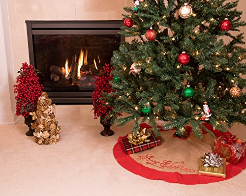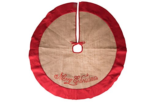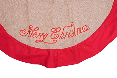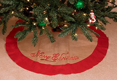 Burlap Christmas Tree Skirt by Clever Creations | Red Border and Embroidered with "Merry Christmas" | Traditional Theme Festive Holiday Design | Contain Needle and Sap Mess on Floor | 40" Diameter