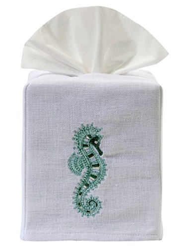 Jacaranda Living Linen/Cotton Tissue Box Cover, Seahorse, Aqua