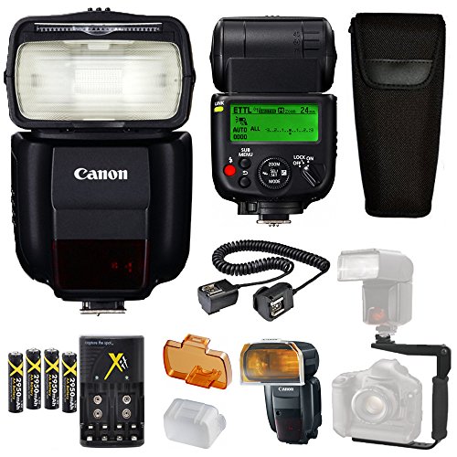 A Canon Speedlite 430EX III-RT with all manufacturer supplied accessories and featuring a 2.4 GHz Wireless Radio Transmission, Zoom Range: 24-105mm (14mm with Panel), Tilts Upward 90°, Rotates 150° Right & 180° Left, and has a Recycle Time of 0.1-3.5 Seconds (Compatible with E-TTL II/E-TTL Autoflash EOS DSLR)