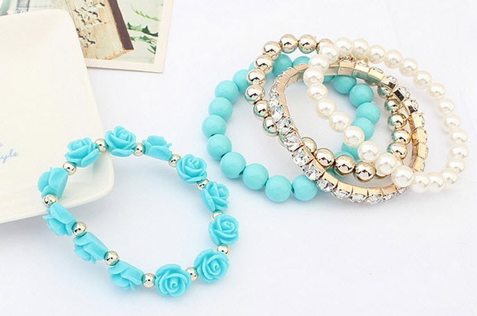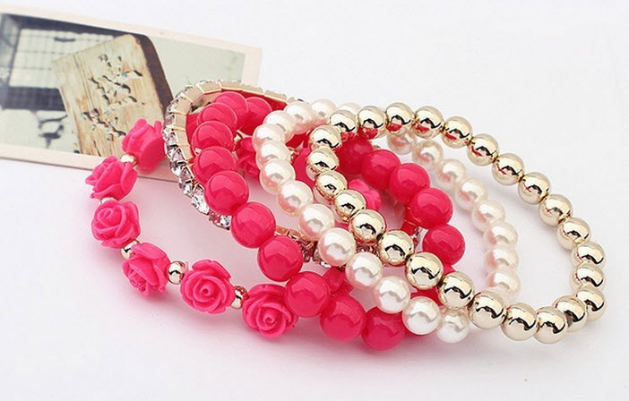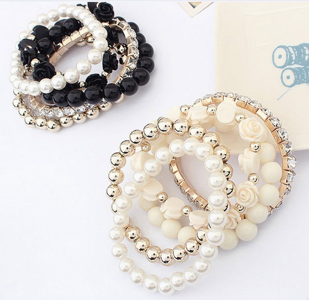 Fashion perhiasan, 2015 trendi mutiara bunga mawar Multilayer pesona gelang Fashion jewelry, trendy 2015 Multilayer pearl rose charm bracelet JEW SJA0846535262 WFS qty000