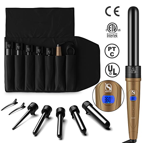 5 IN 1 CURLING IRON WAND SET: Ceramic tourmaline coated barrels for all salon curls - super small frizzy curl to large wave curls - best for long and short hair. Special hairstyle set in Christmas,New Year,Halloween,Graduation for whole family.