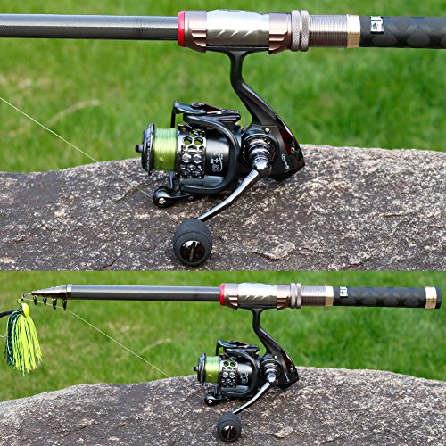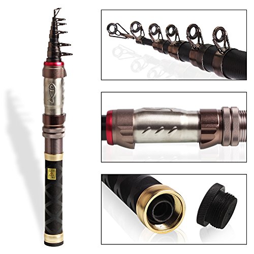 Telescoping fishing rod is made from carbon fiber mixed with fiberglass, So it is good elasticity, hard,durable and light weight.Strong-Anti-saltwater corrosion machined aluminum steel hooded reel seat locks your reel on tight.suitable for spinning reel