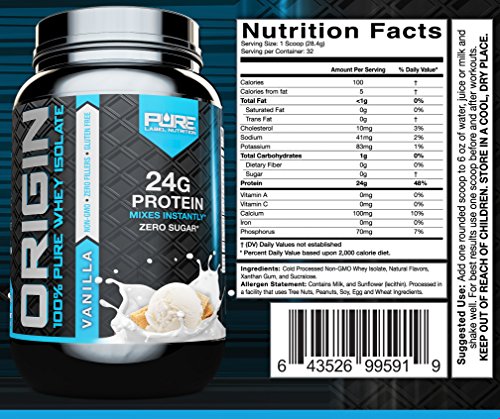 -. Feature : NON GMO / SOY FREE / GLUTEN FREE / LACTOSE FREE + ZERO SUGAR - ORIGIN is the cleanest and purest Whey Isolate available. We believe...Your Transformation is Our Passion. This not only includes your physique but also your health. We made our high quality whey powder with No GMO, No Soy, No Gluten, No Lactose and even No Sugar! / BEST TASTING WHEY ISOLATE - We understand you not only want a high quality whey isolate powder but also something that tastes amazing. We have you covered! Our WPI protein Vanilla flavor system is top rated, mixes instantly and will have you craving for more. / 100% PURE WHEY ISOLATE PROTEIN POWDER - Cross Flow Micro Filtered (CFM) Whey Isolate Protein Powder uses only the highest quality ingredients which provides you the purest WPI protein on the market. Don't be fooled by low quality protein powders. It's time to step up your protein game. / PERFECT POST WORKOUT PROTEIN - Mix with water and/or Almond Milk for the perfect post workout meal. Not only will you be fueling your muscles with the best source of protein powder but you'll be shocked at how GREAT IT TASTES! / 100% MONEY BACK GUARANTEED - You have nothing to lose, backed by our 100% Money Back Guarantee! If you are not 100% satisfied with your results, return for a full refund.
