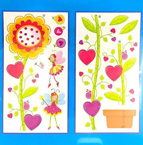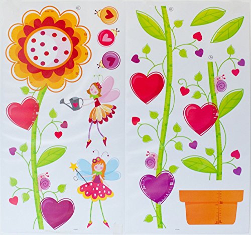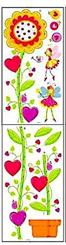 - 2 Sheets of wall stickers that includes flower growth chart, garden fairies, hearts, snails, and ladybugs.