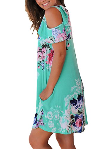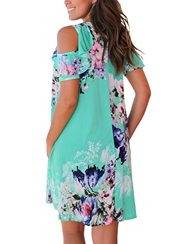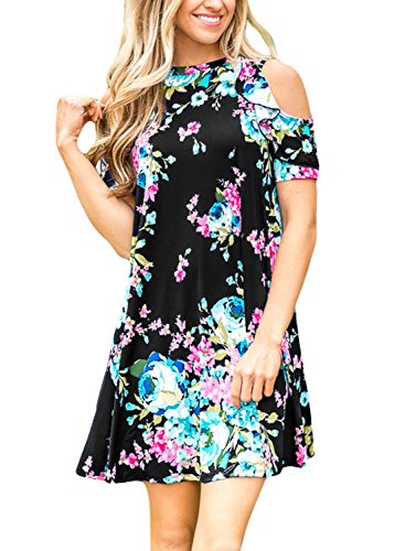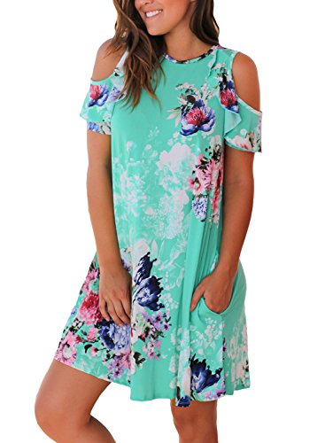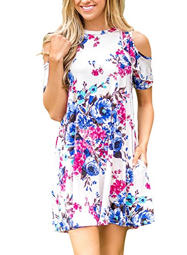 Annflat Women's Summer Floral Print Cold Shoulder Casual Swing Tunic Dress With PocketsOur Floral dress is so adorable in this summer!Perfect for summer beach,casual,party,work,home wear