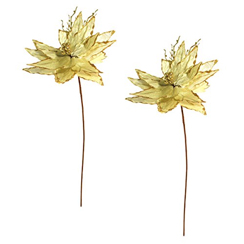 - Set of 2 gold-tone glitter poinsettias Christmas floral picks