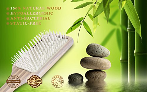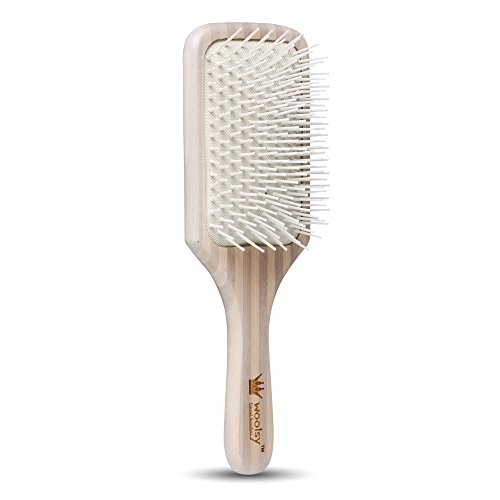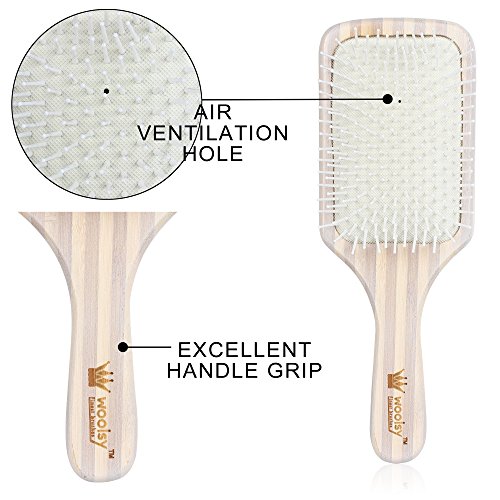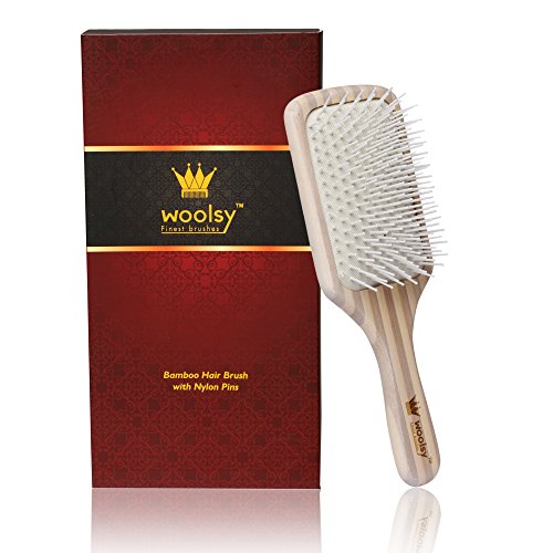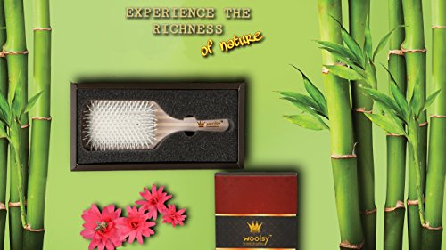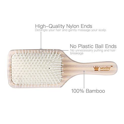 Woolsy Anti-Bacterial Bamboo Hair Brush For Men & Women w/ Pure Nylon Bristles ~ Detangling Paddle Brush for Hair Straightening & Smoothing ~ For Wet hair and Dry hair