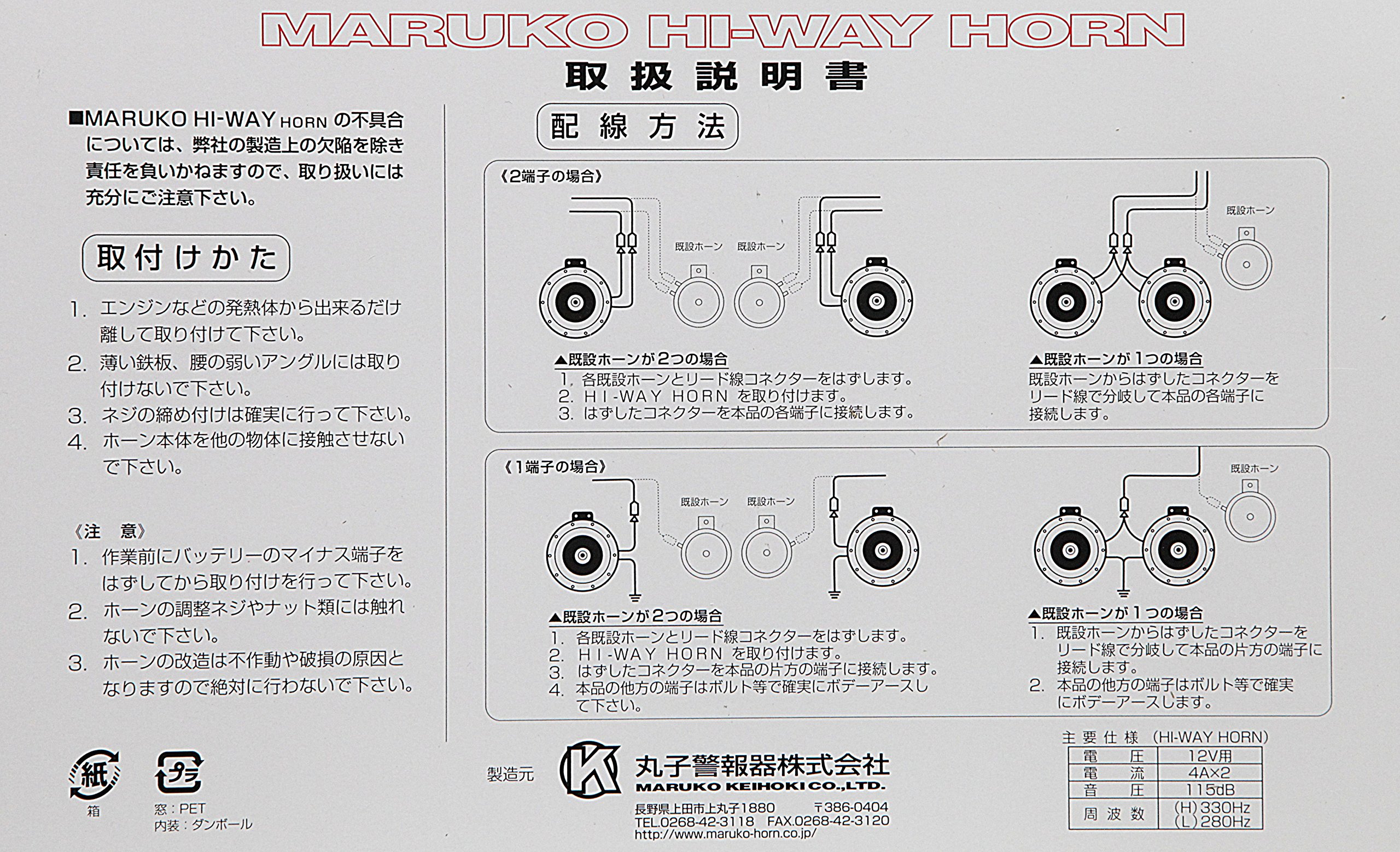 Maruko alarm Marco Horn highway horn chrome-plated treble bass set NULM-D 24V