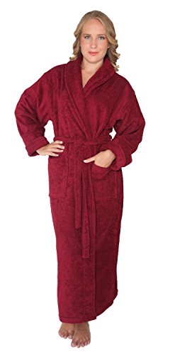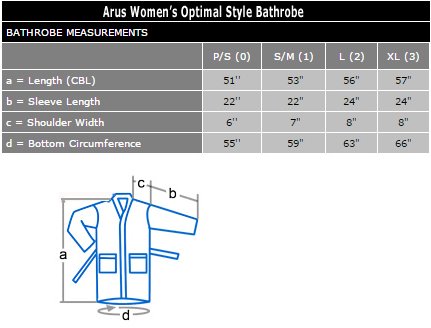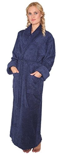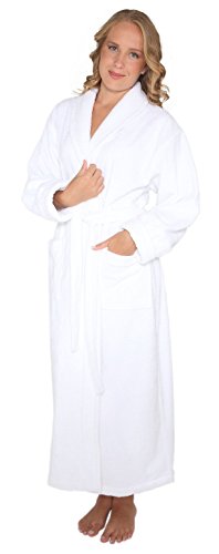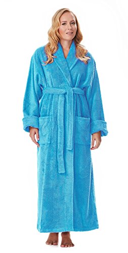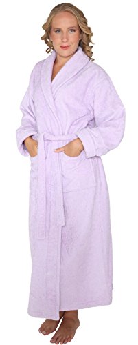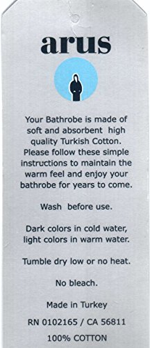 Binding : Apparel Product Description Arus Women's Optimal Style Full Length Thick Shawl Collar Turkish Robe Are you looking for a true FULL LENGTH Turkish Terry Cotton bathrobe? Available in 4 sizes (P/S - S/M - L - XL) and 6 colors with length up to 57", the Optimal Style Bathrobe is specially designed for customers looking for a true ankle length bathrobe. Manufactured from high grade cotton with extra long fibers grown in the Aegean region in Turkey, it is Turkish terry cotton on the inside and on the outside providing unmatched absorbency of Turkish toweling. This top seller bathrobe has a wide cut shawl collar and patch pockets on both sides. It has a self fabric wide belt with 2 belt loops for maximum comfort. The sleeves are long enough with adjustable turn back cuffs. Unit weight is 4 lbs. per robe. You may now enjoy the luxury and absorbency of the first true full length bathrobe in the market. Sizes run large, please refer to the measurements below to determine your size Detailed Bathrobe Length / Circumference Information: Size P/S ( Neck Label 0 ) : 51" / 55" Size S/M ( Neck Label 1 ): 53" / 59" Size L ( Neck Label 2 ): 56" / 63" Size XL ( Neck Label 3 ): 57" / 66" Made in Turkey. 0