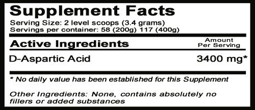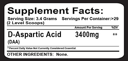 -. Binding : Health and Beauty -. Brand : Muscle Feast -. Feature : Direct from factory with approximately 18 month shelf liife / Lab Tested for Purity / May help boost testosterone levels / In powder form -. Label : Muscle Feast -. LegalDisclaimer : Product is not meant to diagnose, treat or cure any illness or ailment. -. Manufacturer : Muscle Feast -. MPN : D-Aspartic -. PackageQuantity : 1 -. PartNumber : D-Aspartic -. ProductGroup : Health and Beauty -. ProductTypeName : HEALTH_PERSONAL_CARE -. Publisher : Muscle Feast -. Studio : Muscle Feast -. Title : D-Aspartic Acid