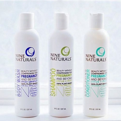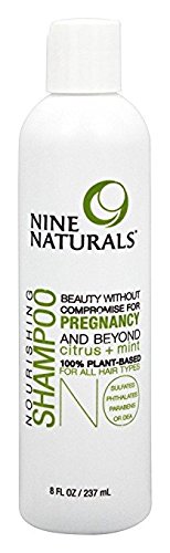 No pregnancy hair care regimen is complete without this safe, all-natural pregnancy shampoo. Perk up your hair and your mood with the bright scents of lemon, lime and soothing peppermint in this luxurious, sulfate-free shampoo. Organic jojoba seed oil and shea butter boost shine and lock in moisture; vitamin B5 strengthens and helps prevent split ends. Use the shampoo for before, during and after pregnancy. The gentle formula makes it great for everyday use on all hair types and is safe for color-treated hair. For All Hair Types. 8 oz. For a complete natural pregnancy routine, also use Nine Naturals Citrus + Geranium Soothing Body Wash and Nine Naturals Vanilla + Geranium Regenerative Belly Butter.Feature