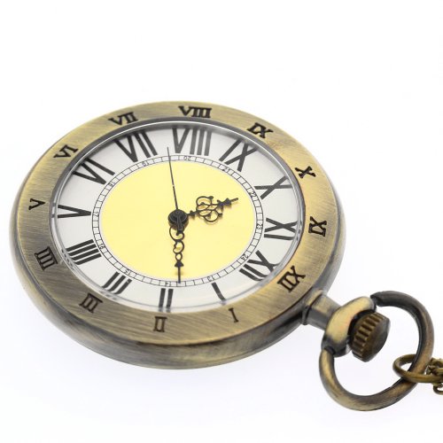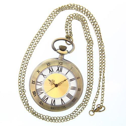 -. Title : FobTime Vintage Dual Display Roma Pocket Watch Long Chain Open Face Noble Unisex Quartz Watch
