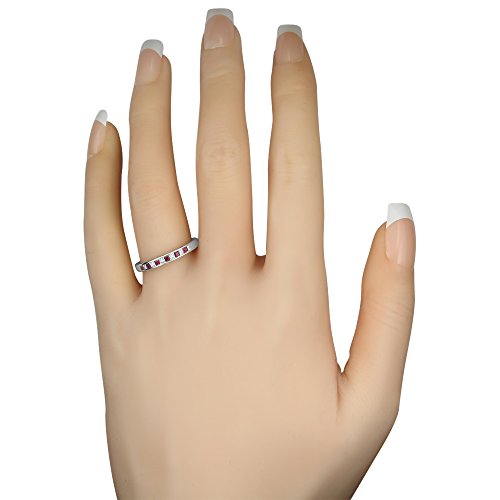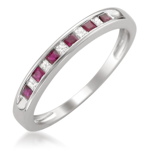 -. Title : 14k White Gold Princess-cut Diamond and Red Ruby Wedding Band Ring (1/3 cttw, H-I, I1-I2)
