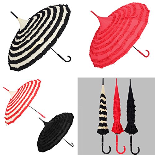 -. Title : Tinksky Pagoda Umbrella Uv Parasol Lace Ruffles P.R.Incess Wedding Stick Umbrella